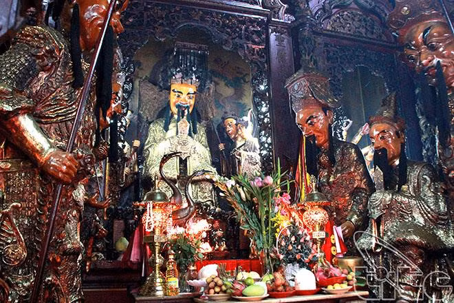 Toàn bộ kiến trúc trong miếu được trang trí tinh xảo, đắp nổi hình rồng, phượng và cẩn sứ, các mái vòm cũng được cẩn sứ và ghép hình tỉ mỉ. Hai bên tường được cẩn sành mô tả các hình tượng tín ngưỡng dân gian. Trong khuôn viên miếu có cây si cổ thụ tồn tại gần 100 năm.