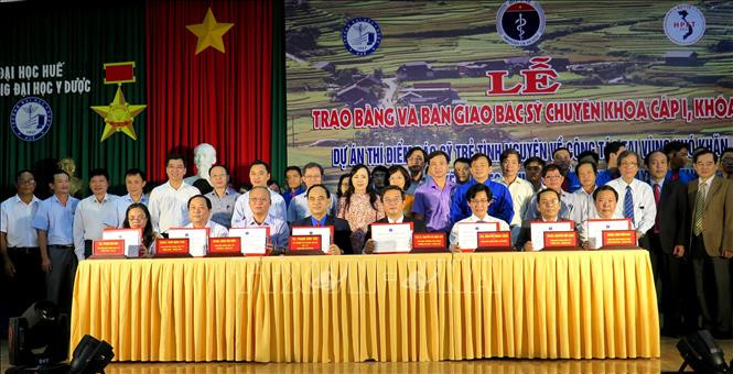 Ngày 17/10, tại thành phố Huế, Bộ Y tế phối hợp với Trường Đại học Y Dược (Đại học Huế) tổ chức Lễ trao bằng và bàn giao 27 bác sĩ chuyên khoa I, Khóa 6 thuộc Dự án “Thí điểm đưa bác sĩ trẻ tình nguyện về công tác tại miền núi, vùng sâu, vùng xa, biên giới, hải đảo, vùng có điều kiện kinh tế - xã hội khó khăn (ưu tiên 62 huyện nghèo)" khu vực miền Trung - Tây Nguyên.