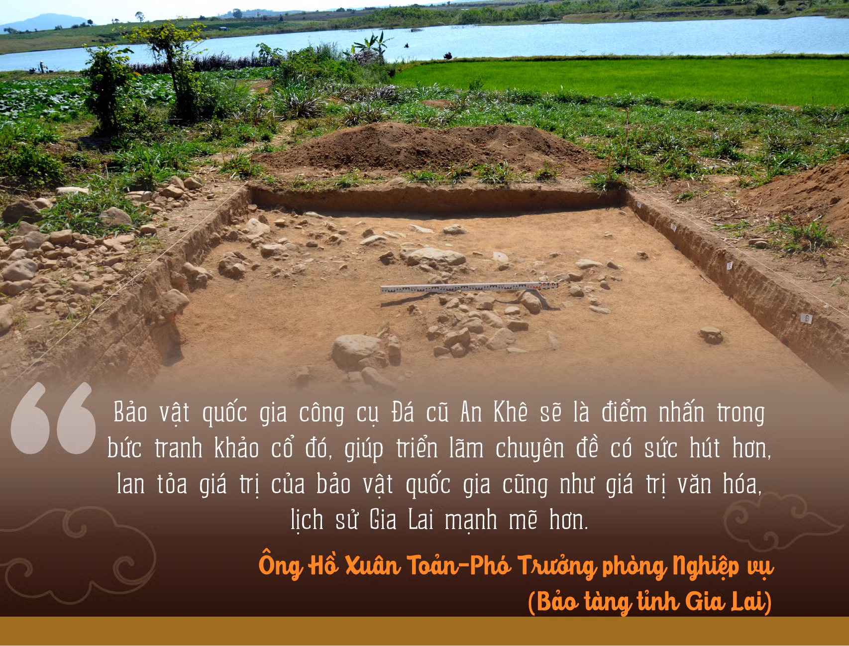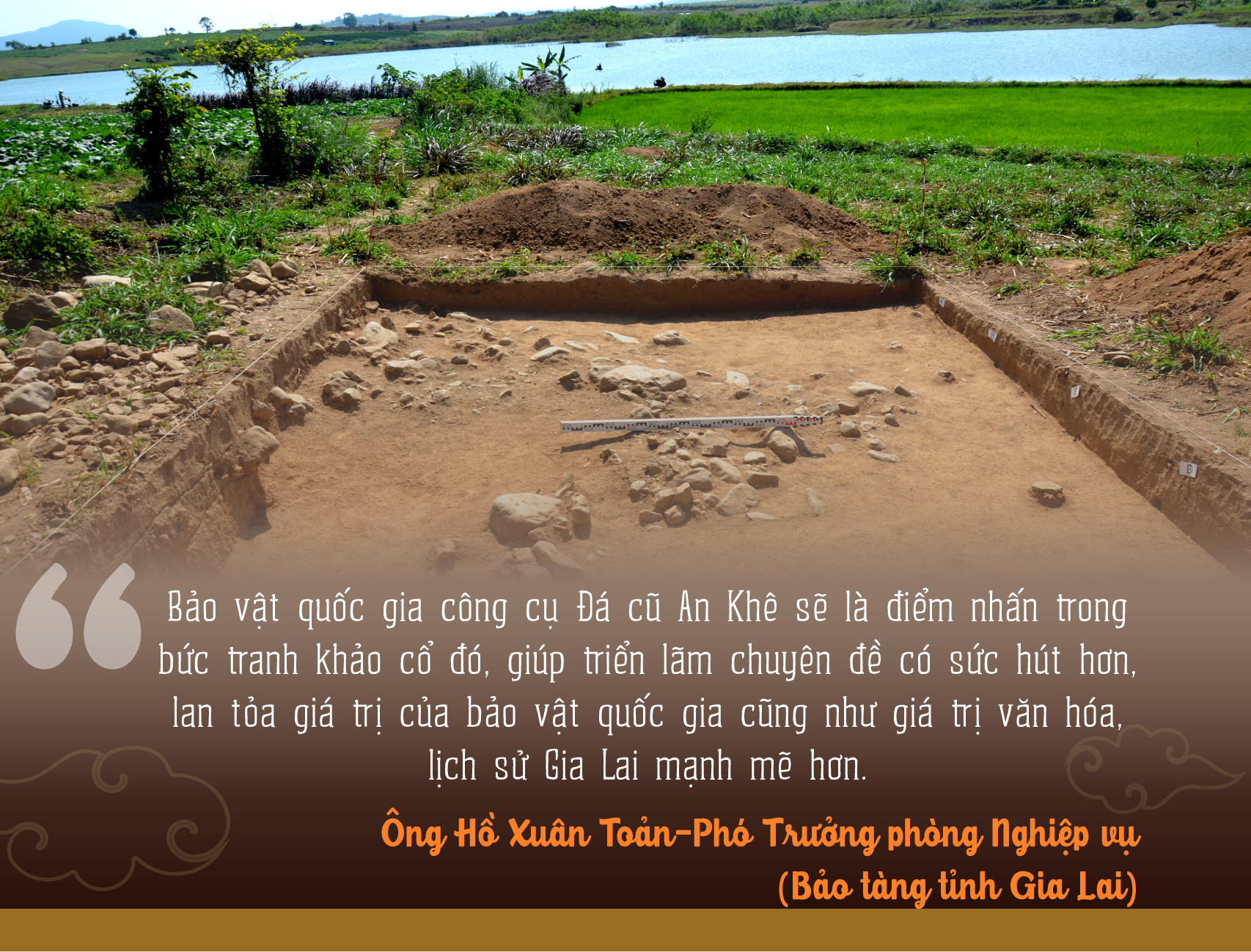 Ông Toản cho biết thêm, từ trước tới nay, Bảo tàng tỉnh chưa tổ chức triển lãm chuyên đề về khảo cổ học Gia Lai mà chỉ là một nội dung lồng ghép trong các chuyên đề về văn hóa, dân tộc học. Với việc sưu tập công cụ Đá cũ An Khê vừa được công nhận là bảo vật quốc gia gắn với Di tích quốc gia đặc biệt Rộc Tưng-Gò Đá cho thấy giá trị lịch sử, văn hóa, khoa học nổi bật của khảo cổ học Gia Lai trên bản đồ khảo cổ Việt Nam và quốc tế. “Vì vậy, chúng tôi có kế hoạch xây dựng nội dung tổ chức những triển lãm chuyên đề về khảo cổ học tại các địa phương, trường học trong tỉnh. Qua đó, giới thiệu toàn cảnh bức tranh khảo cổ học ở Gia Lai từ thời sơ kỳ, trung kỳ, đá mới cho tới thời kỳ kim khí. Đây cũng chính là sức hấp dẫn của khảo cổ học Gia Lai khi các di chỉ phát hiện trong những năm qua tại các địa phương đều đại diện cho các thời kỳ, xuyên suốt tiến trình lịch sử tiến hóa của loài người”-ông Toản thông tin.