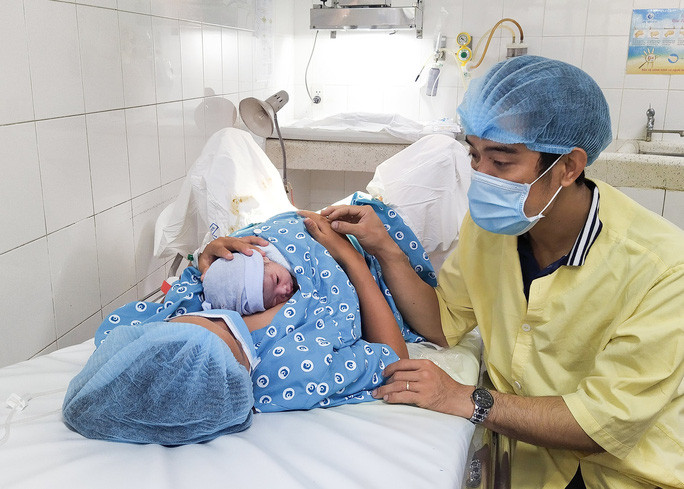 Cùng lúc đó, ở phòng sanh dịch vụ, một bé gái kháu khỉnh cũng đang nằm da kề da với mẹ. Cháu cũng cất tiếng khóc chào đời lúc 0 giờ, là con của chị Đoàn Thị Như Trúc, sinh năm 1993, nhà ở quận Gò Vấp - TP HCM.