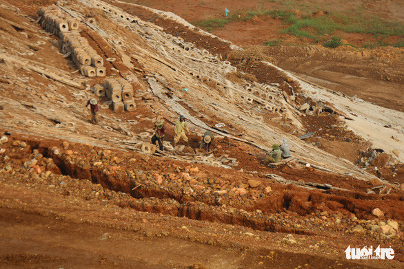 | Như Tuổi Trẻ Online đã đưa tin, trưa 4-4, tại mái taluy lô 3 gói thầu số 02XL xảy ra sạt trượt. Hàng ngàn khối đất đá đồ dồn xuống phía dưới, vùi lấp hầu như toàn bộ hạng mục đã thực hiện trước đó. Theo ghi nhận tại hiện trường, vị trí bị sạt là tại mái taluy âm lô 3 từ cọc bêtông 326 đến 338. Công trình có nhiều điểm sạt lở nghiêm trọng nên có thể việc khắc phục sẽ mất nhiều thời gian - Ảnh: L.ĐAN |