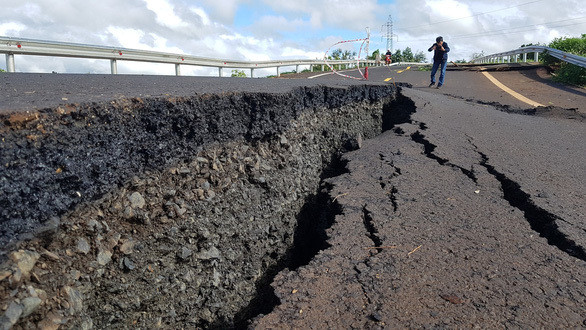 Sau khi kiểm tra hiện trường xác định khoảng từ 120 đến 150m đường bị hư hỏng. Trong đó, phần chính bị tụt thẳng đứng xuống khoảng 30 đến 40m, kéo theo các phạm vi khác tụt theo.