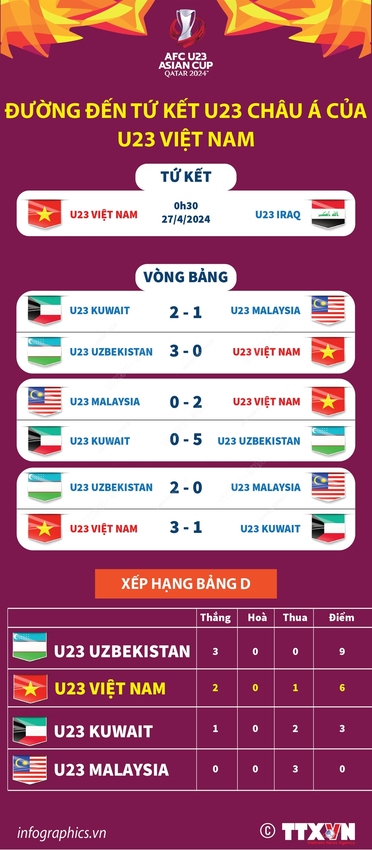 Infographic Đường đến tứ kết U23 Châu Á của U23 Việt Nam