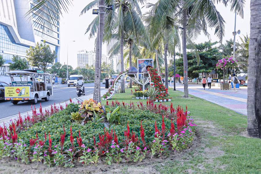 | Đường hoa biển Đà Nẵng (Danang Beach - Flowers walk) có 13 cụm trang trí, trải dài gần 2 km trên đường Võ Nguyên Giáp, quận Sơn Trà, đoạn từ nút giao cuối đường Võ Nguyên Giáp đến bãi tắm Sao Biển. |