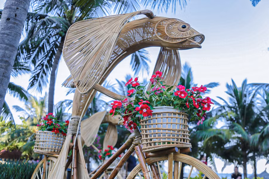 | Các mô hình trang trí được thiết kế từ mây tre độc đáo, lạ mắt. |