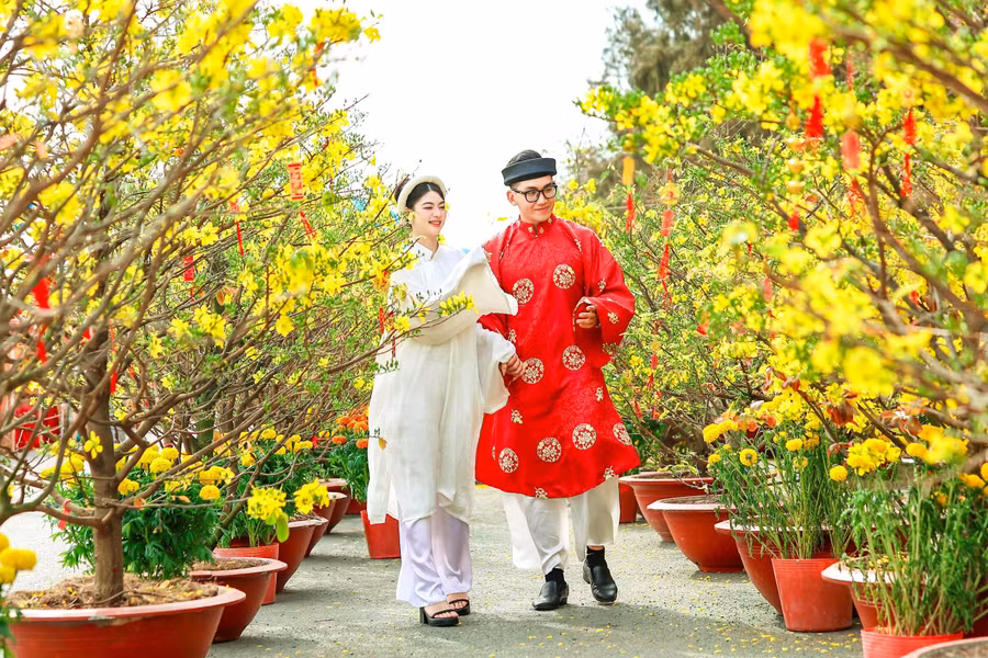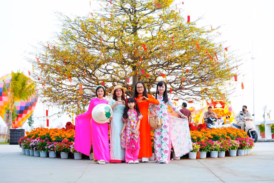 "Mọi năm ở TP.HCM thì cũng chỉ đi loanh quanh trong thành phố, từ đường hoa Nguyễn Huệ tới mấy chợ hoa quen thuộc. Năm nay, thành phố có thêm các công viên nữa cũng đi hết rồi. Trước tết, mấy đứa cháu tôi có xuống Cần Giờ chụp bộ hình áo dài, khen dưới này đẹp dữ lắm nên mùng 2 xuất hành là đưa ông bà, ba mẹ đi liền. Đúng là quá kinh ngạc. Tôi trước giờ chưa từng ra bắc dịp tết nên chưa bao giờ thấy nhiều hoa đào như vậy. Còn hoa mai thì vàng rực phủ kín, nhìn sáng rực rỡ luôn. Năm mới tươi rói thế này là quá tuyệt" - bác Thanh Thảo (67 tuổi, ngụ P.Xuân Hòa, TP.HCM) chia sẻ.