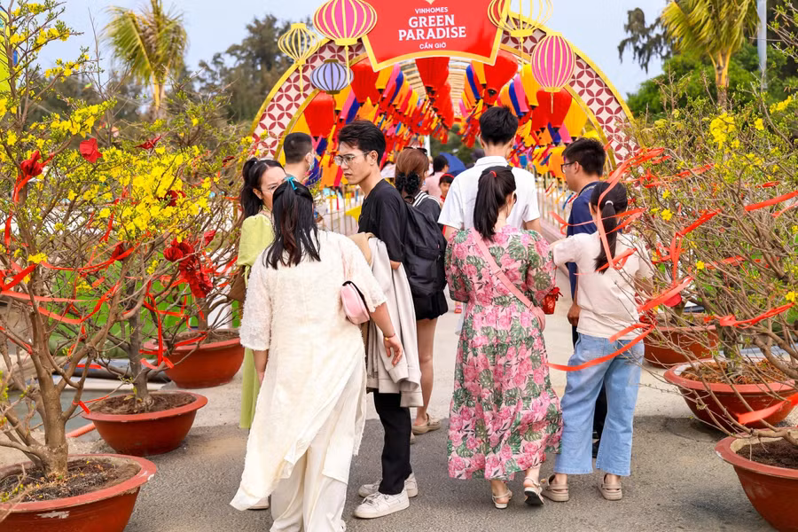 Kể từ sau hôm khai mạc ngày 7.2, lượng khách đổ về Cần Giờ ngày càng đông. Không khí xuân càng ngập tràn hơn khi vườn hoa xuân quy mô 600 gốc (300 mai, 300 đào) nở rộ đúng những ngày đầu xuân năm mới, tạo thành đại cảnh rực rỡ như "Tết Bắc - Nam hội tụ" hiếm có.