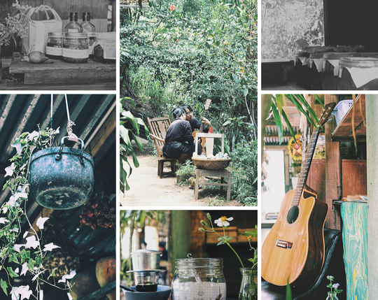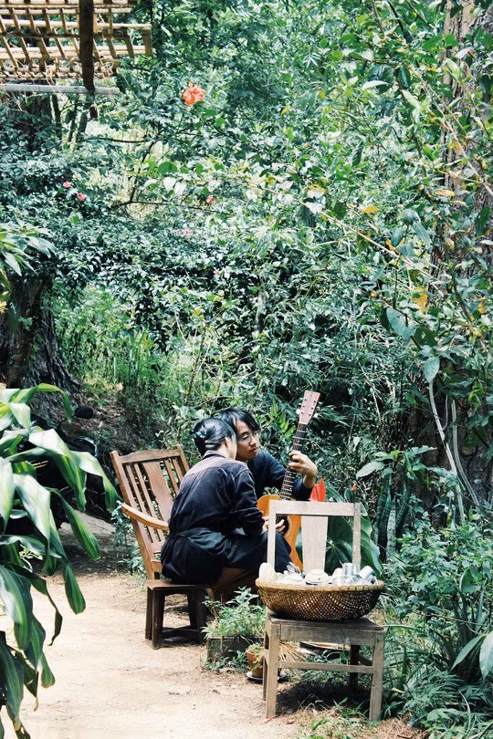 Mọi thứ ở quán chân chất mà cũng lãng mạn. Điểm đặc biệt ở Đương là tính nghệ sĩ. Những đĩa nhạc được xếp đầy trên kệ, đâu đó ở góc quán sẽ thấy chiếc đàn guitar hay ukulele. Nhìn đôi bạn ngồi đàn hát ngoài sân, bất chợt tôi nhớ cố nhạc sĩ Trịnh Công Sơn cũng từng có một mong ước: "Thông đang reo dưới đồi. Anh ước mơ một căn nhà có khói um lên trên đỉnh. Trong đó có một hạnh phúc vừa đủ để người này nương vào người kia".
