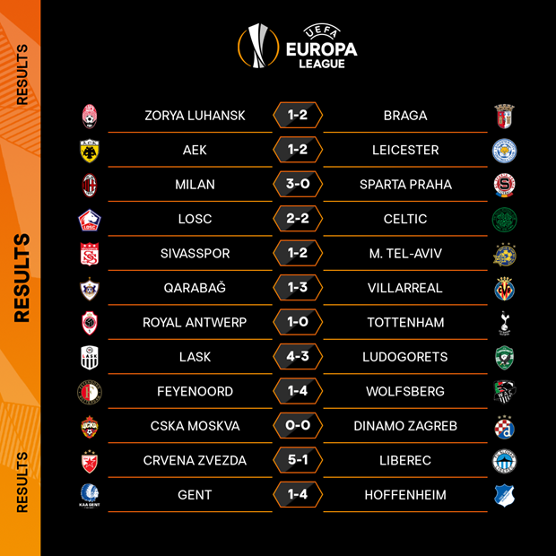 Kết quả các trận đấu Europa League