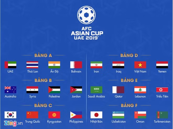 Các đội bóng tranh tài tại Asian Cup 2019. Đồ họa: Minh Phúc.