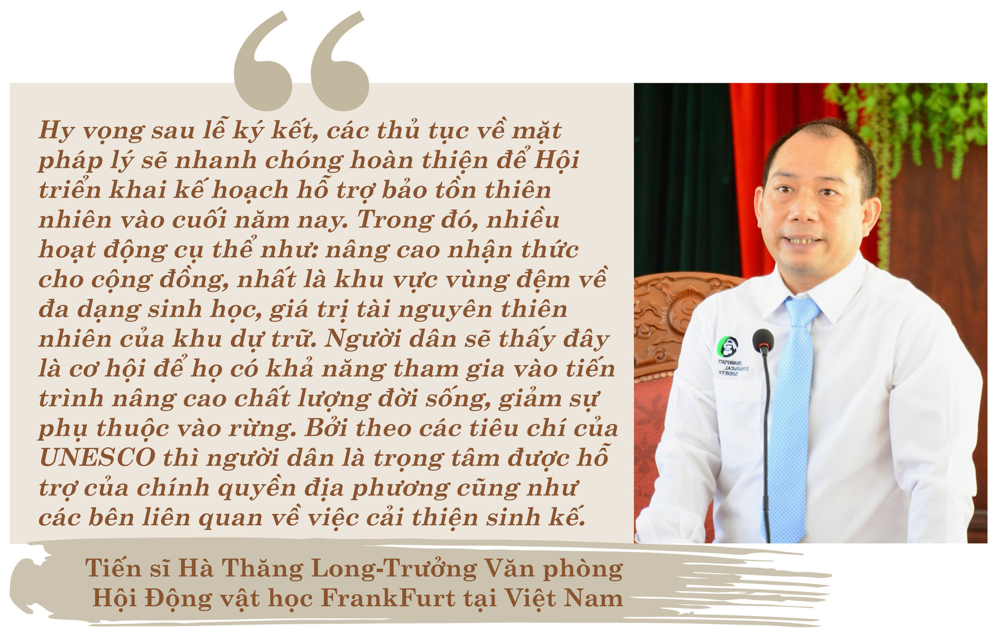 Theo Tiến sĩ Hà Thăng Long-Trưởng Văn phòng Hội Động vật học FrankFurt tại Việt Nam: Với nguồn lực, kinh nghiệm tổ chức các hoạt động bảo tồn thiên nhiên hàng chục năm qua, Hội mong muốn sẽ vừa thực hiện nhiệm vụ hỗ trợ, vừa là cầu nối với các tổ chức phi chính phủ để mang lại nguồn lực tài chính, con người góp phần bảo tồn bền vững hệ sinh thái rừng, giá trị đa dạng sinh học và hoạt động phát triển bền vững tại Khu dự trữ sinh quyển thế giới cao nguyên Kon Hà Nừng.