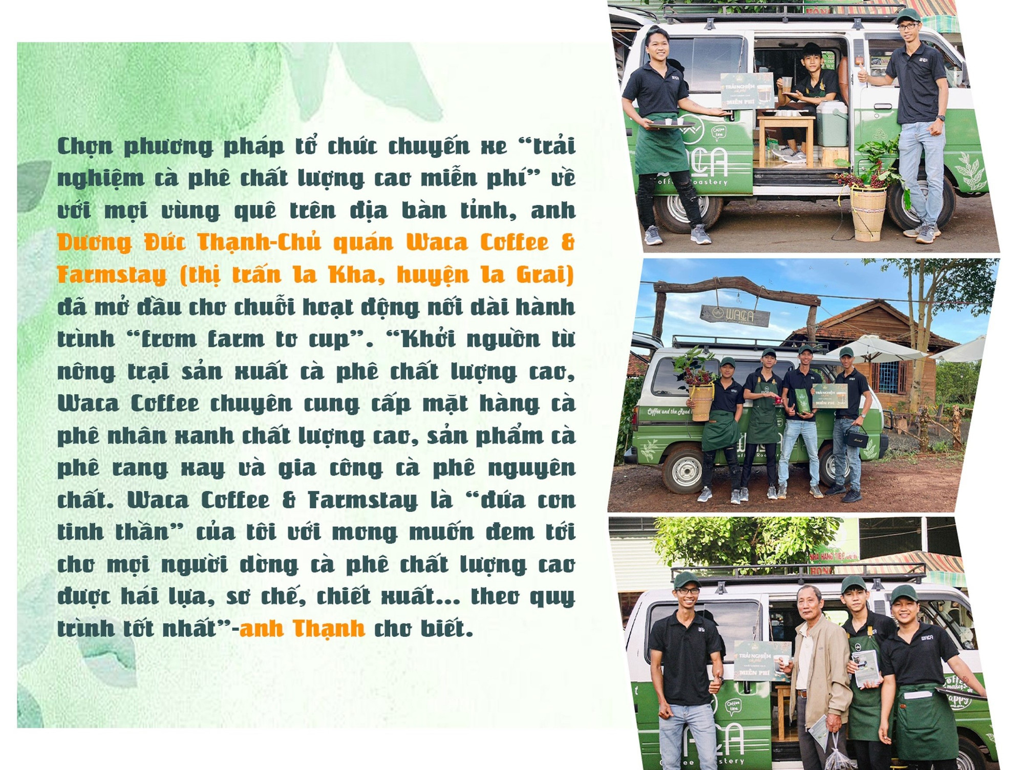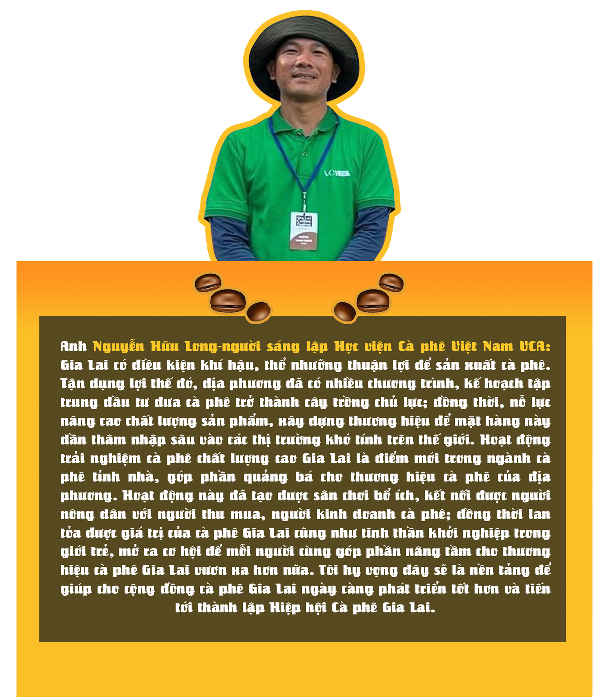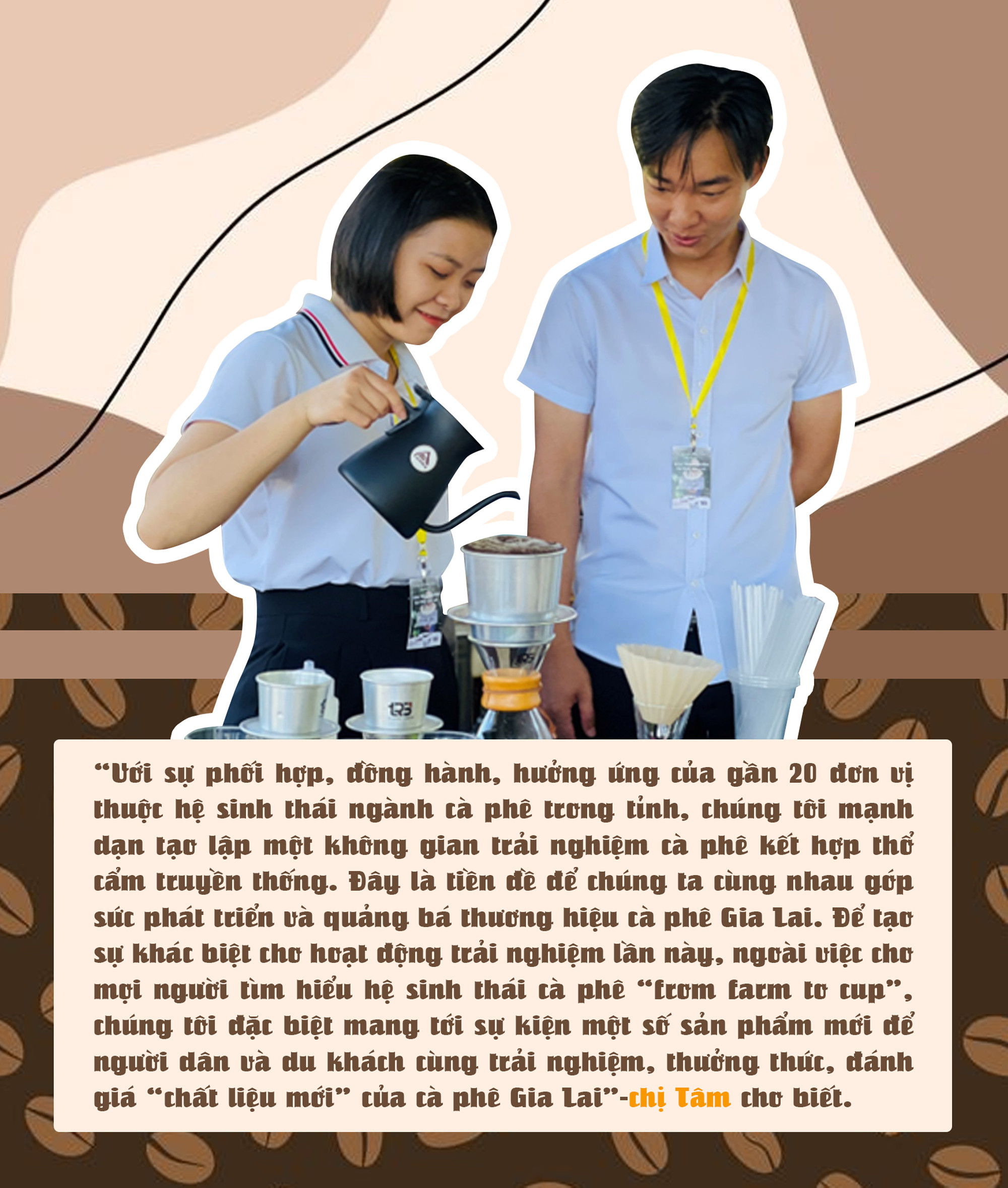 Nhiều lần đưa sản phẩm cà phê Núi Lu vào không gian trải nghiệm cà phê tại các sự kiện của địa phương, anh Vũ Văn Tuyền-Chủ nông trại Núi Lu (xã Hòa Phú, huyện Chư Păh) luôn thấy hứng khởi bởi ngoài việc quảng bá thương hiệu sản phẩm của mình, anh còn được tìm hiểu các phương pháp rang xay, chiết xuất cà phê thú vị, từ pha phin truyền thống đến pha máy. Anh Tuyền nhận định: “Hoạt động trải nghiệm cà phê chất lượng cao đã thực sự ghi dấu bởi sự kết nối hệ sinh thái ngành cà phê “from farm to cup”. Ở đây, người nông dân-nhà rang xay-chủ quán cà phê-người pha chế-người tiêu dùng cùng nhau bàn luận về việc phát triển vùng nguyên liệu cà phê chất lượng cao Gia Lai; tạo hiệu ứng tích cực để chung tay xây dựng thương hiệu cà phê Gia Lai vươn xa”.