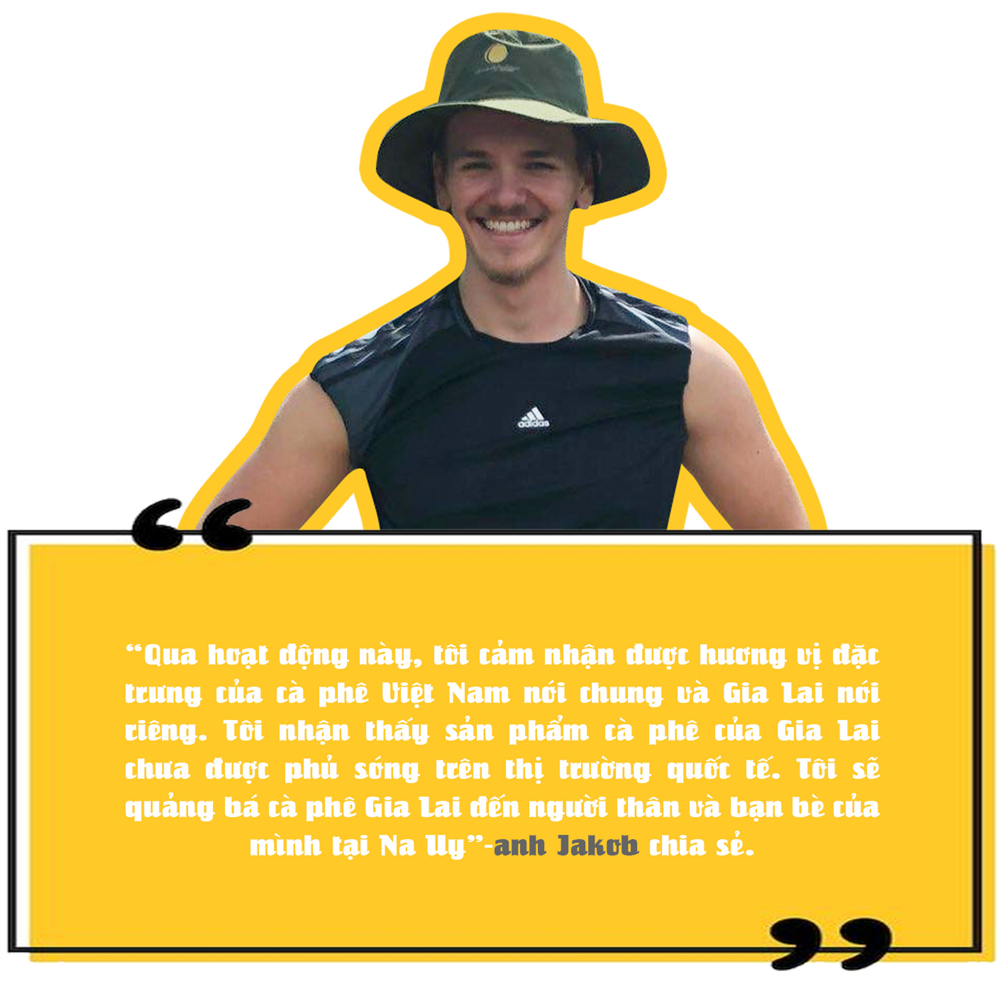 Anh Jakob (người Na Uy) lần đầu tiên đến Việt Nam và cũng lần đầu được tham gia trải nghiệm cà phê chất lượng cao Gia Lai. Anh bày tỏ sự ấn tượng bởi một không gian mở với các hoạt động trải nghiệm, thưởng thức và tìm hiểu về vùng nguyên liệu cà phê Gia Lai.