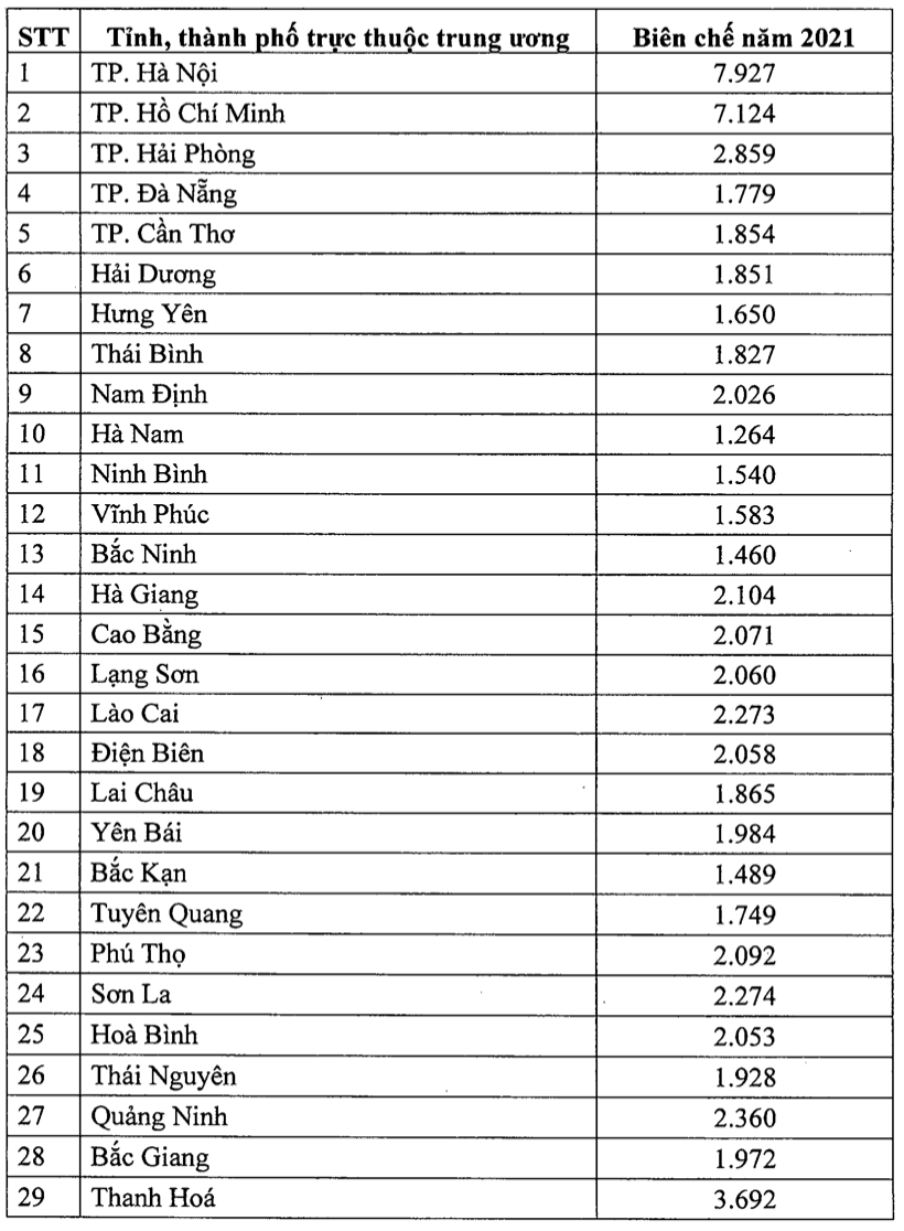 Tổng số biên chế năm 2021 là 249.650 (giảm so với năm 2020 là 3.867 biên chế). Ảnh ĐH