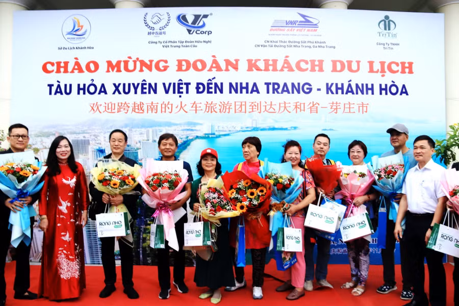 Những vị khách đầu tiên rời chuyến tàu hỏa xuyên Việt để khám phá Nha Trang.
