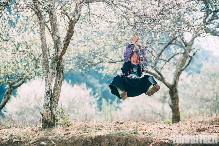 | Trẻ em vui đùa trong những rừng mận mùa xuân |