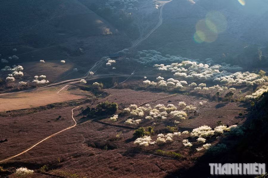 | Rừng mận trắng trải dài cả vài chục hec- ta ở Nà Ka, Tân Lập |