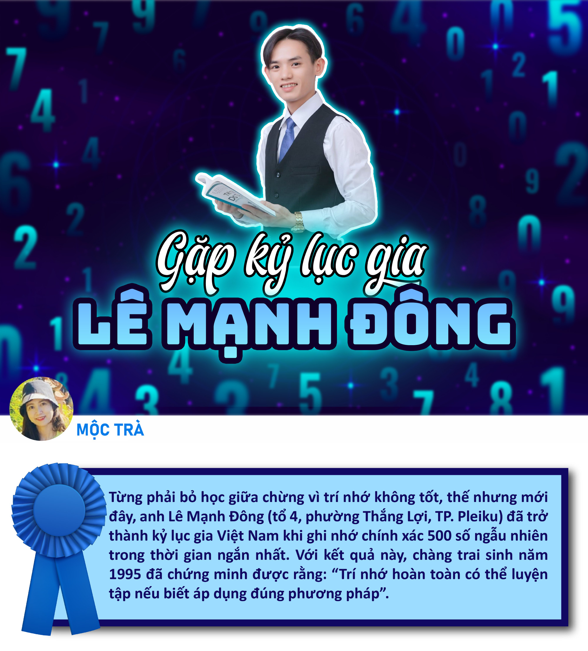 Cuộc sống của Lê Mạnh Đông cứ êm đềm trôi qua như vậy cho đến khi 2 con của anh dần khôn lớn. Cuối năm 2021, con trai đầu của anh bước vào đợt kiểm tra đầu tiên của năm lớp 1. Nhìn con vất vả với khá nhiều bài vở, anh Đông thử lên mạng tìm phương pháp ghi nhớ nhanh kiến thức để giúp con hoàn thành tốt bài kiểm tra cuối học kỳ I, mà không nghĩ rằng, đây lại là cơ duyên khởi nguồn đưa mình đến với phương pháp rèn luyện trí nhớ và trở thành kỷ lục gia Việt Nam.