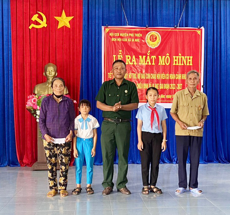 Hội CCB xã Ia Ake hiện có 150 hội viên, trong đó 1 hội viên thuộc diện hộ nghèo và 10 hội viên cận nghèo. Nhằm chung tay cùng các ngành thực hiện tốt công tác an sinh xã hội, nhất là công tác khuyến học, tháng 4-2022, Hội CCB xã ra mắt mô hình “Tiết kiệm gây quỹ hỗ trợ, đỡ đầu con cháu hội viên có hoàn cảnh khó khăn”.