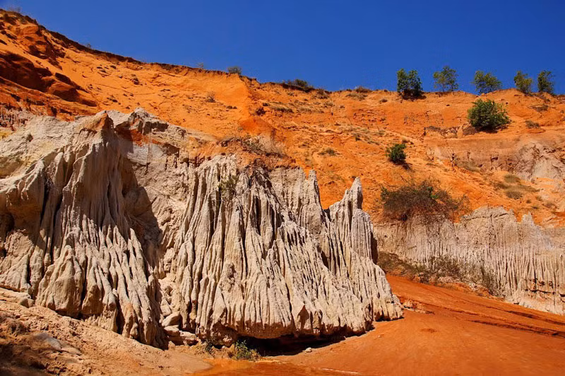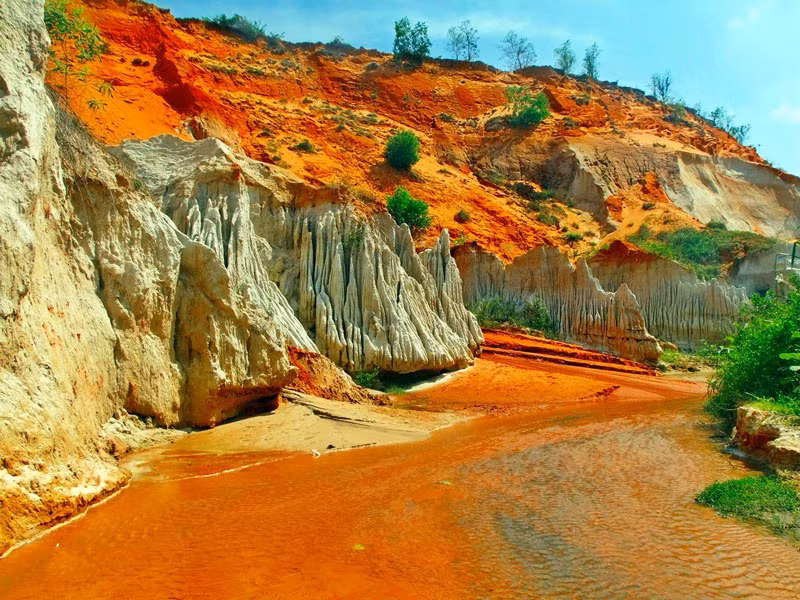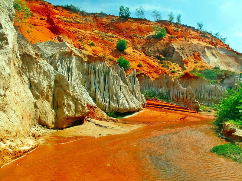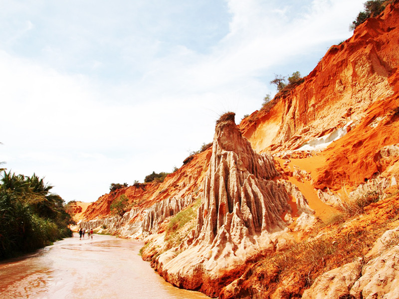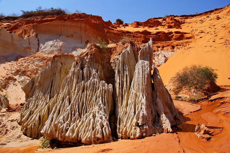 Không gian tại đây đỏ rực bởi màu cát và nằm cách bãi biển không xa lắm. Có hàng nghìn nhũ cát lô nhô chĩa thẳng lên trời như đỉnh tháp. Cát bị mưa gió bào mòn nên có nhiều hình thù kỳ lạ, nhưng cứng như đá.