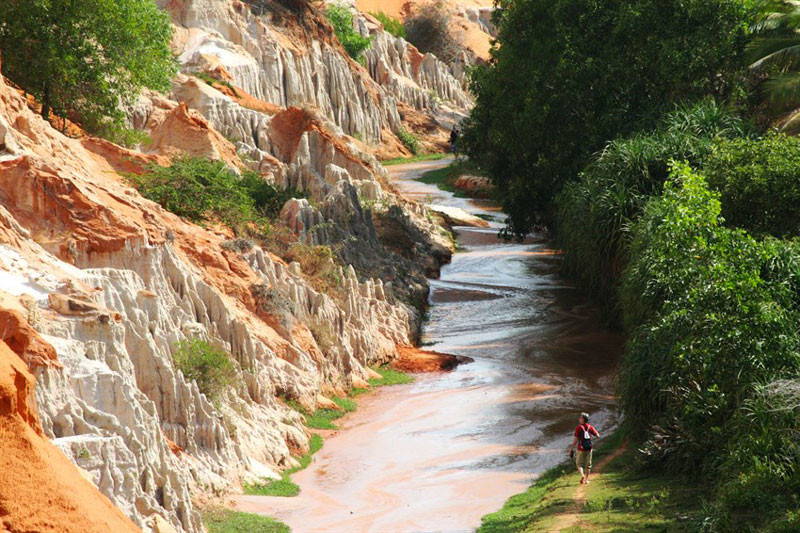 Đi chân trần lội nước sẽ giúp du khách như rũ bỏ được mọi ưu phiền trong cuộc sống.