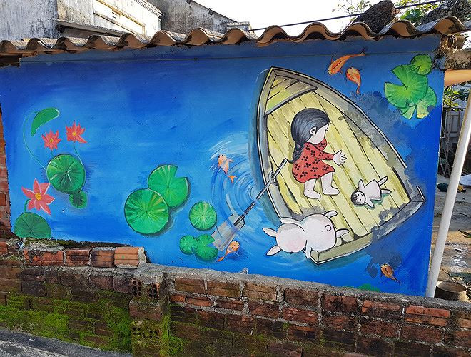 Làng bích họa Tam Thanh ở thành phố Tam Kỳ, tỉnh Quảng Nam không chỉ là ngôi làng đầu tiên được “tô son điểm phấn” đẹp như một bức tranh, mà còn là làng chài nổi tiếng nhất trên dải đất hình chữ S.