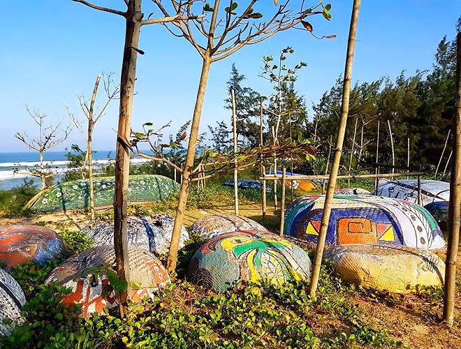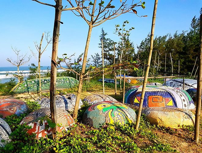 Lối đi ra biển của dân làng chài bỗng trở nên thơ mộng và cuốn hút lạ kỳ. Ai đến đây cũng cảm thấy thư thái và hòa mình với biển.