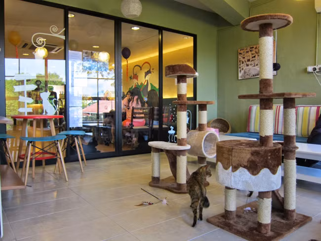 Người sáng lập và là chủ hiện tại của quán, Janet, cho biết cô cảm thấy mình cần mở một quán cafe mèo để thỏa mãn những người yêu mèo kém may mắn không thể nuôi mèo ở nhà. Cô nói: “Hiện chúng tôi có sáu em mèo thuộc nhiều giống khác nhau”.