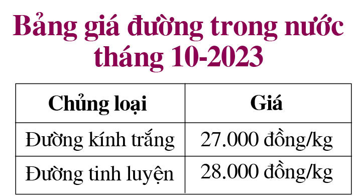 Còn tại thị trường trong nước, theo Báo Công thương, giá đường cũng tăng theo đà tăng thế giới. Theo đó, khi niên vụ mía 2022-2023 kết thúc (1/7/2022-30/6/2023), giá đường bán ra ở các nhà máy dao động trong khoảng 20.000-22.000 đồng/kg, thì hiện nay đã tăng lên 28.000 đồng/kg. Đường phục vụ sản xuất cũng tăng mạnh lên mức 22.000-23.000 đồng/kg.