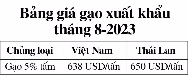Trong khi đó, giá gạo 5% tấm của Thái Lan được chào bán ở mức từ 650 USD/tấn (tăng gần 20% giá trị kể từ lệnh cấm xuất khẩu gạo của Ấn Độ vào ngày 20-7).