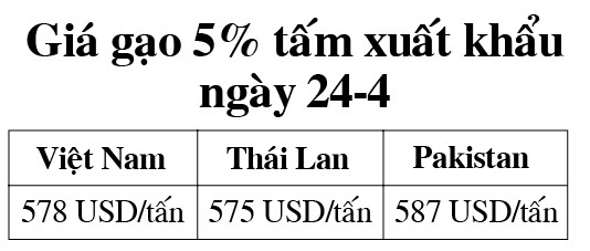 Cụ thể, gạo 5% tấm giảm 4 USD, xuống mức 578 USD/tấn. Mức giá này cao hơn gạo cùng phân khúc của Thái Lan 3 USD, nhưng thấp hơn gạo của Pakistan 9 USD/tấn.