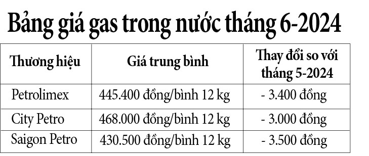 Từ đầu năm 2024 đến nay, giá gas trong nước đã có 3 lần tăng (tháng 1, tháng 2, tháng 3) và 3 lần giảm (tháng 4, tháng 5, tháng 6).