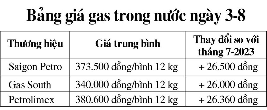 Đại diện các doanh nghiệp kinh doanh gas cho biết, nguyên nhân giá gas trong nước tăng trở lại là vì sau 2 tháng giảm sâu, giá gas thế giới tháng 8-2023 giao theo hợp đồng (CP) tăng 77,5 USD lên 465 USD/tấn, nên các doanh nghiệp trong nước điều chỉnh theo mức tăng tương ứng.