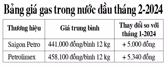 Theo Báo Đại Đoàn Kết, nguyên nhân giá gas trong nước tăng là do hợp đồng giá gas thế giới bình quân tháng 2-2024 hiện ở mức 635 USD/tấn (tăng 10 USD/tấn so với tháng 1-2024) nên các đơn vị kinh doanh đã điều chỉnh theo mức tăng tương ứng.
