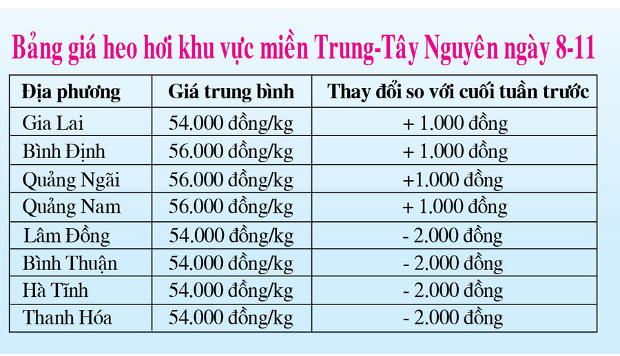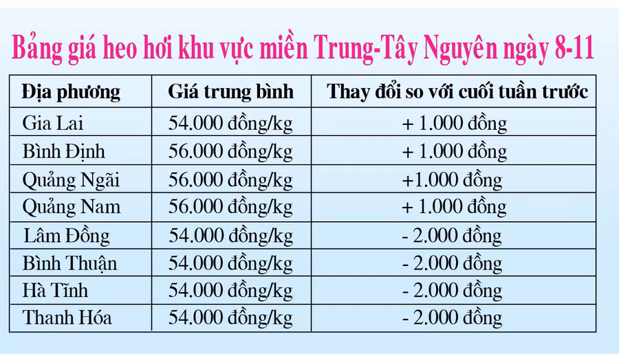 Theo đó, sau khi tăng 1.000 đồng/kg, giá heo hơi tại tỉnh Gia Lai ở mức 54.000 đồng/kg.