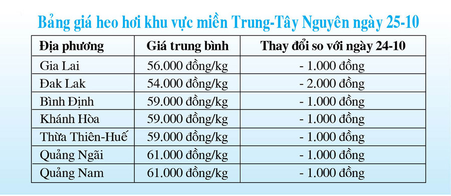 (GLO)- Theo thông tin từ Báo Công thương, trang thông tin điện tử tổng hợp vietnambiz.vn, giá heo hơi ngày 25-10 ở khu vực miền Trung-Tây Nguyên ghi nhận giảm 1.000 đồng đến 2.000 đồng/kg, dao động trong khoảng 54.000 đồng đến 61.000 đồng/kg.