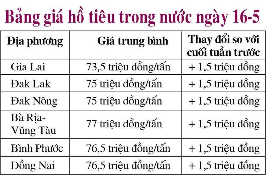 Tại tỉnh Bình Phước và Đồng Nai, hồ tiêu được thu mua với giá 76,5 triệu đồng/tấn.