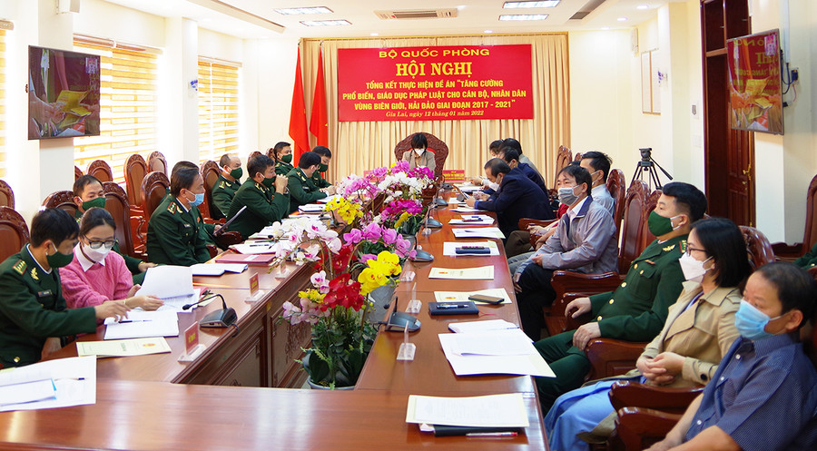 Báo cáo tại hội nghị nêu rõ: Trong 5 năm qua, Ban Chỉ đạo Đề án đã phối hợp, phát huy vai trò của hệ thống chính trị để phổ biến, giáo dục pháp luật cho cán bộ, Nhân dân vùng biên giới, hải đảo. Theo đó, Bộ Quốc phòng, Bộ Tư pháp, Bộ Tài chính cùng 44 tỉnh, thành phố biên giới, hải đảo đã phối hợp chặt chẽ, thường xuyên đổi mới và đa dạng nội dung, hình thức phổ biến, giáo dục pháp luật phù hợp với đối tượng, gắn với việc thực hiện các chương trình mục tiêu giảm nghèo bền vững, phù hợp với định hướng phát triển kinh tế, bảo tồn bản sắc văn hóa, phù hợp với truyền thống tốt đẹp của dân tộc. Qua đó, phát huy tốt vai trò, trách nhiệm của hệ thống chính trị trong lãnh đạo, chỉ đạo, tăng cường công tác phổ biến, giáo dục pháp luật; tập trung vào địa bàn trọng điểm, phức tạp về an ninh, trật tự.