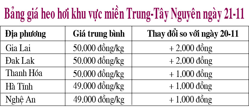2Cụ thể, sau khi điều chỉnh tăng 2.000 đồng/kg, giá heo hơi tại Gia Lai và Đak Lak cùng ở mức 50.000 đồng/kg.