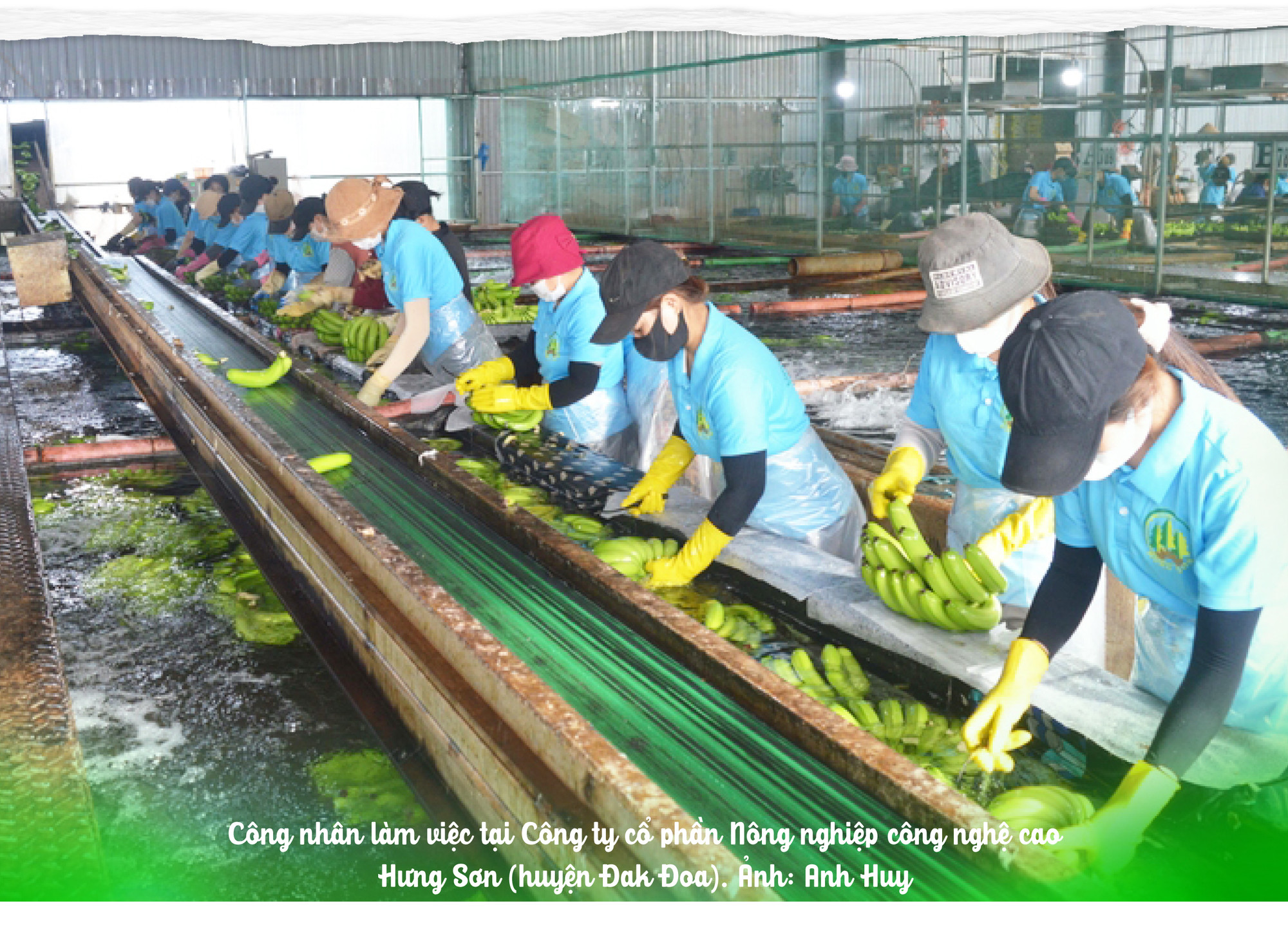 Công ty cổ phần Nông nghiệp công nghệ cao Hưng Sơn (huyện Đak Đoa) là doanh nghiệp xuất khẩu chuối với khối lượng lớn. Đến nay, Công ty đã xây dựng được vùng nguyên liệu chuối già lùn Nam Mỹ rộng hơn 400 ha đạt tiêu chuẩn GlobalGAP. Mỗi năm, Công ty xuất khoảng 20 ngàn tấn sản phẩm. Ông Trương Thành Trọng-Phó Giám đốc Công ty-cho hay: “Hiện nay, khoảng 80% sản lượng hàng xuất khẩu của Công ty là đi Hàn Quốc, còn lại là thị trường Trung Quốc, Nhật Bản… Trong 3 tháng đầu năm 2024, kim ngạch xuất khẩu của Công ty đạt khoảng 3,5 triệu USD. Năm 2024, Công ty đặt mục tiêu xuất khẩu khoảng 22-23 ngàn tấn sản phẩm, tương đương kim ngạch khoảng 15 triệu USD. Công ty đã khai thác được một số thị trường mới. Vì vậy, để chủ động về sản lượng, Công ty dự định tiếp tục mở rộng diện tích vùng trồng”.