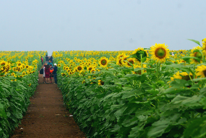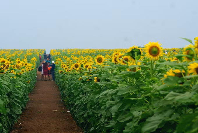 Đầu năm mới là thời điểm nở rộ của hoa anh đào, hướng dương và cải trắng, hấp dẫn nhiều du khách thích chụp ảnh.