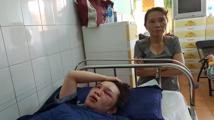 Tại giường bệnh, chị Vi thuật lại, khi đang làm đẹp cho một khách nữ tại spa thì bị một nhóm người 2 nữ, 4 nam từ đâu kéo đến đòi gặp.
