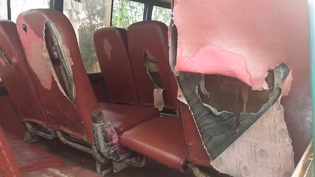 Nhiều chiếc ghế đã rách và tài xế còn độ chế thêm nhiều ghế phụ để chở thêm nhiều học sinh