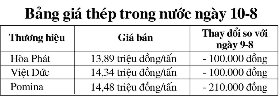 Cụ thể, sau điều chỉnh giảm 100.000 đồng/tấn, dòng thép D10 CB300 của thương hiệu Hòa Phát hiện có giá 13,89 triệu đồng/tấn.