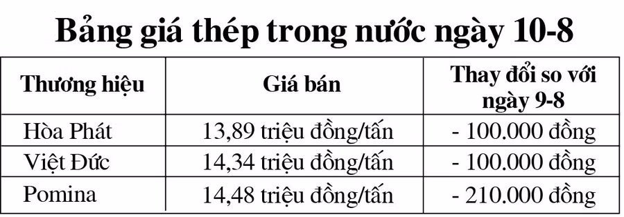 Còn dòng thép D10 CB300 của Pomina hiện ở mức 14,48 triệu đồng/tấn (giảm 210.000 đồng).