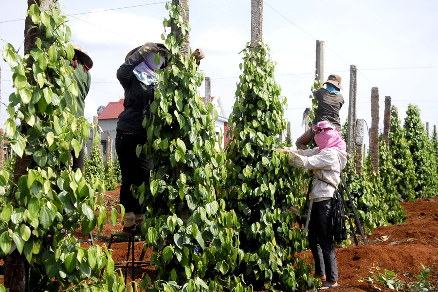 Nông dân trồng tiêu đang lỗ nặng do giá tiêu liên tục giảm sâu. Ảnh: I.T