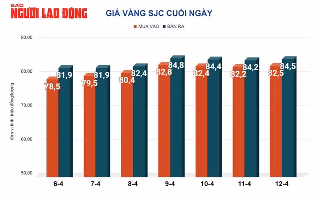 Trước đó, sau khi Ngân hàng Nhà nước thông tin sẽ triển khai việc tăng cung vàng miếng, giá vàng SJC trong ngày 12-4 giảm 500.000 đồng/lượng, xuống còn 84,5 triệu đồng/lượng. Ngược lại, do sức mua tăng mạnh nên giá vàng nhẫn tăng 1 triệu đồng/lượng, cán mức 77,1 triệu đồng/lượng.