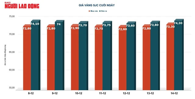 Tại Việt Nam, giá vàng SJC bán ra trong ngày 14-12 gần như bất động, chốt cuối ngày tại 74,3 triệu đồng/lượng.