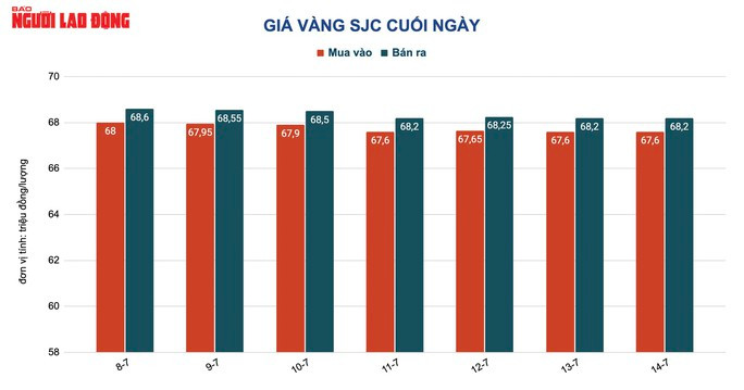 Trước đó, do giao dịch yếu nên trong ngày 14-7, giá vàng SJC gần như giữ nguyên tại 68,2 triệu đồng/lượng.