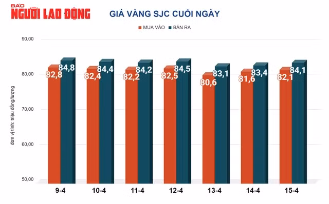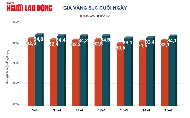Trước đó, trong ngày 15-4, giá vàng tại Việt Nam cũng tăng - giảm chóng mặt. Giá vàng miếng SJC có lúc lên tới 85,5 triệu đồng/lượng.